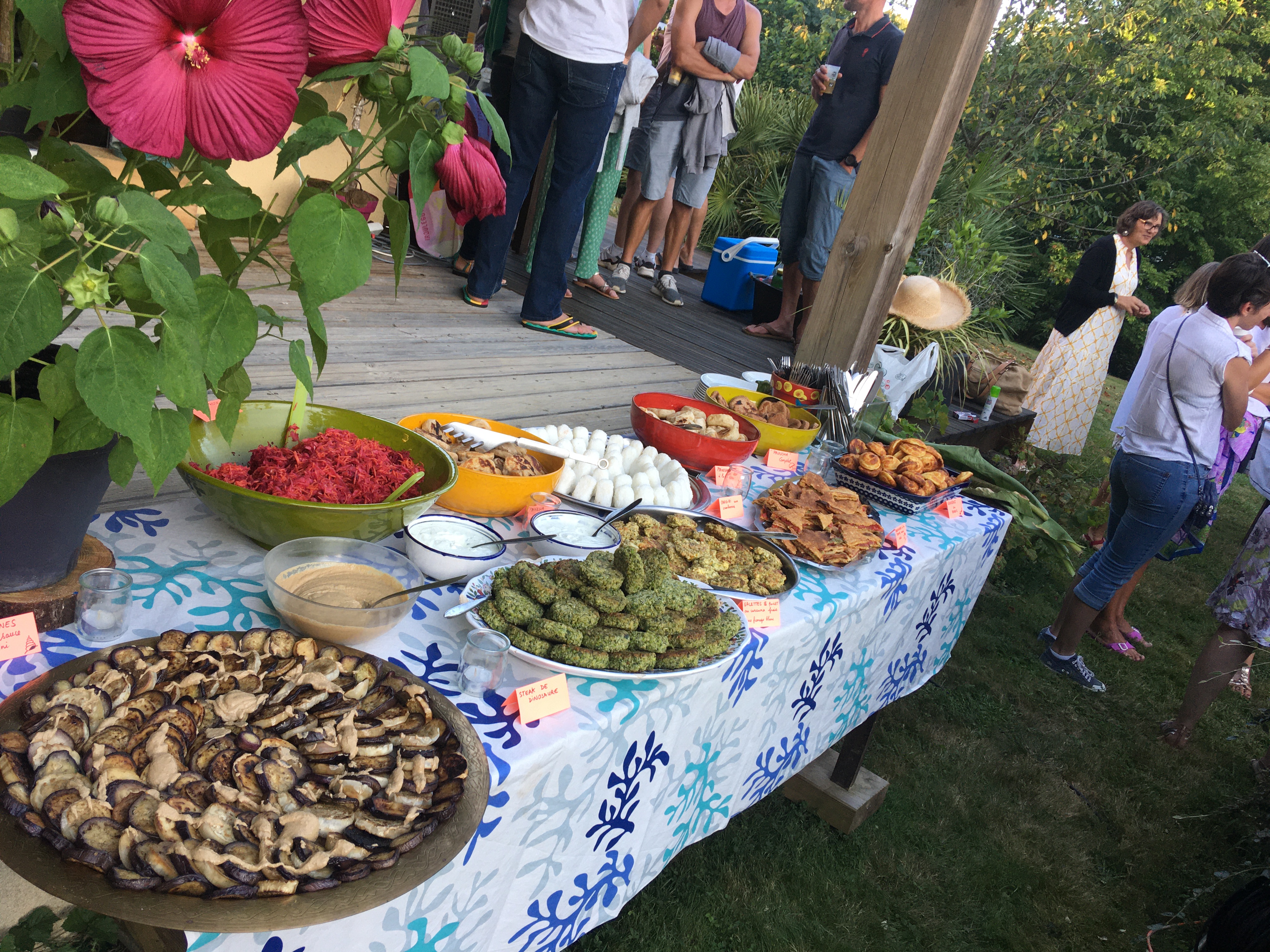 Repas partagé entre amis pour une fête d'anniversaire. Mets à la fois copieux et originaux mais surtout succulents qui ont fait l'unanimité auprès des convives ! Mention spéciale aux petits pains et houmous et à la terrine à base de veau. Bravo pour ce festin.