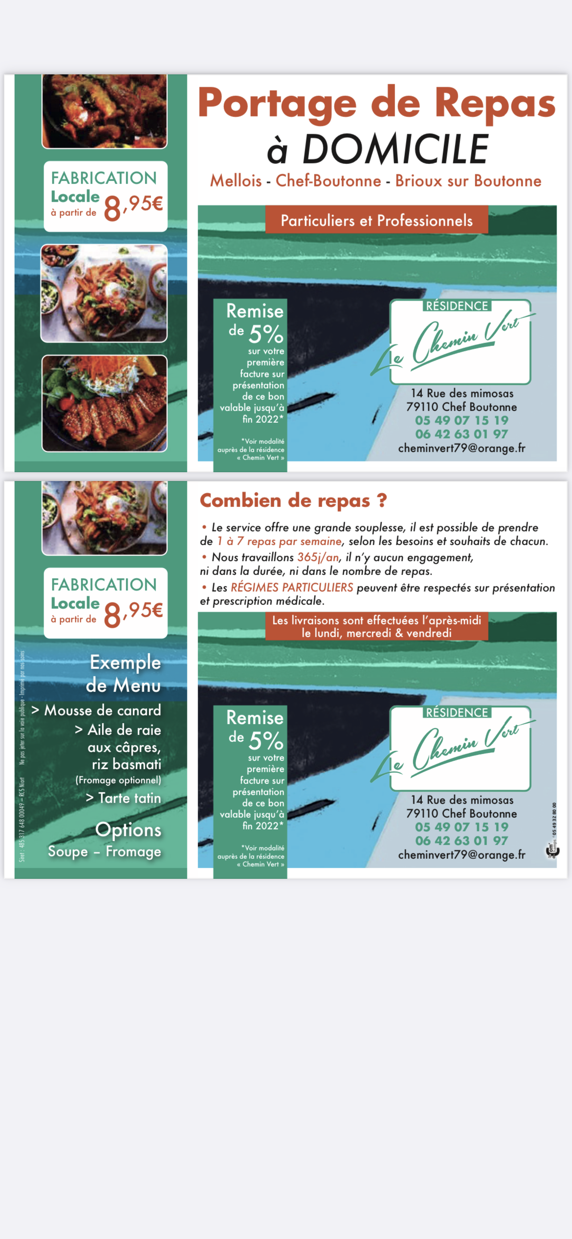Voici toutes les informations sur le Livraison de repas à domicile Les mijotés portés qui ce trouve au 15 Rue du Pont Supérieur, 79110 Chef-Boutonne (79). Sur cette fiche vous trouverez les photos, l'adresse, les horaires d'ouverture, le numero de téléphone et les avis clients.Vous pouvez églement rédiger un avis si vous le souhaitez en bas de page.