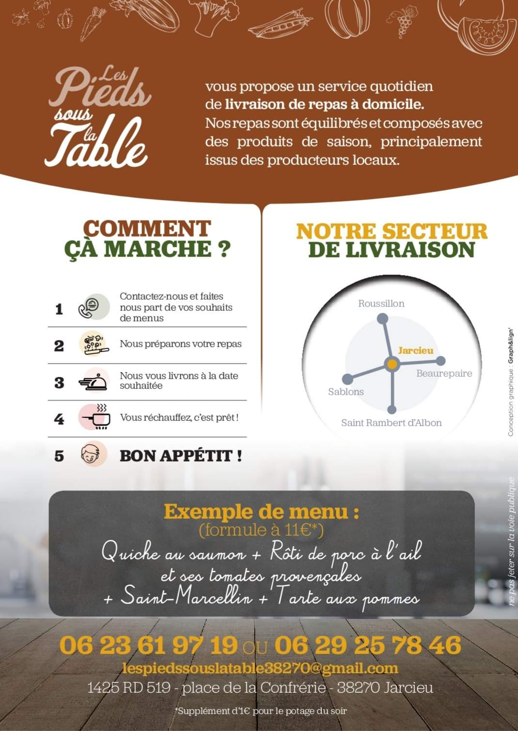 Voici toutes les informations sur le Livraison de repas à domicile Les Pieds Sous La Table qui ce trouve au 1425 RD 519, 38270 Jarcieu (38). Sur cette fiche vous trouverez les photos, l'adresse, les horaires d'ouverture, le numero de téléphone et les avis clients.Vous pouvez églement rédiger un avis si vous le souhaitez en bas de page.
